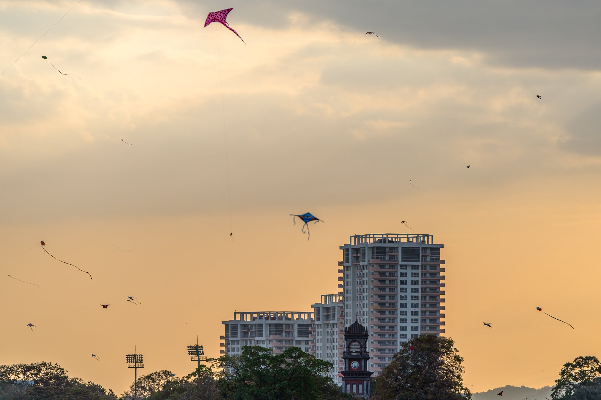 Kites dotting the skies above the Queen's Park Savannah. Easter Sunday Traditions. Kite flying in the Queen's Park Savannah, 2025.